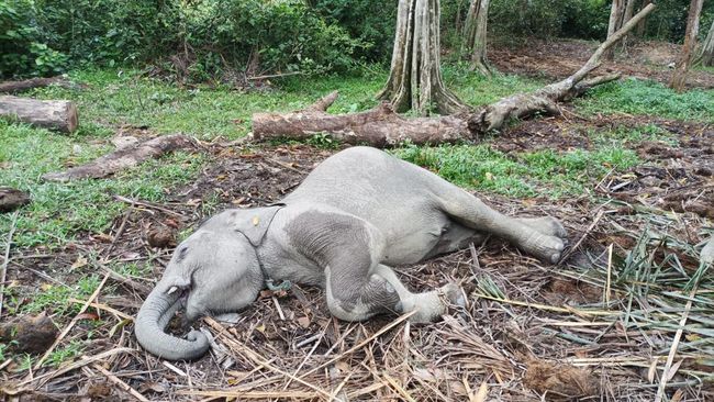 Seekor gajah di Taman Wisata Alam Buluh Cina Riau, Sumatra Utara, mati. Gajah Sumatera bernama Damar itu terserang virus.