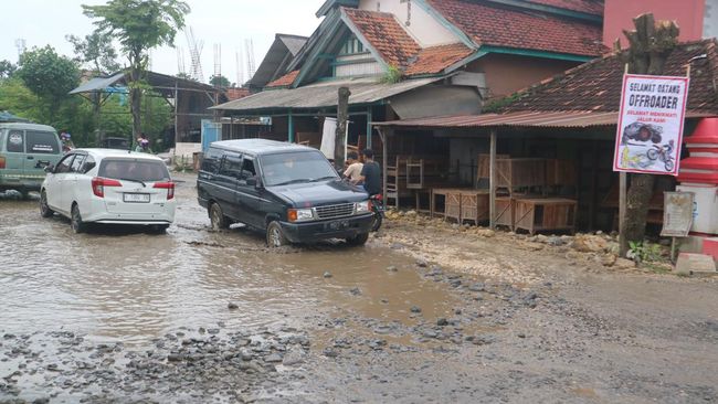 Pantauan detikJateng di lokasi, Jumat (20/1/2023) pukul 12.30 WIB kondisi jalan rusak parah. Lubang menganga di jalan sepanjang 1 kilometer.