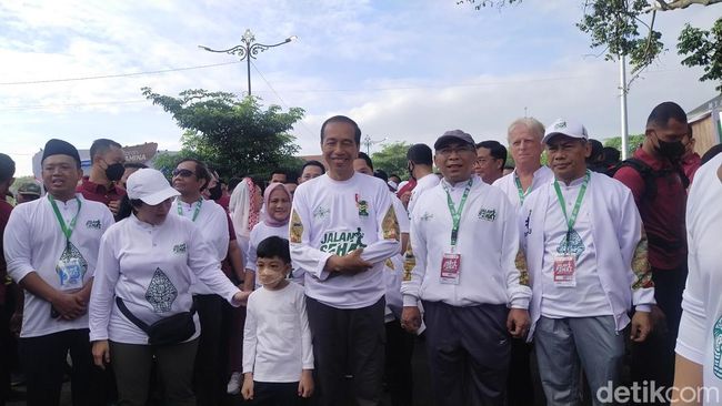 Pantauan detikJateng, Minggu (22/1/2023), putra sulung Gibran Rakabuming Raka dan Selvi Ananda itu kompak mengenakan baju berwarna putih senada dengan kakek dan neneknya. Selain bersama Jokowi dan Iriana, Ethes berjalan bersama Ketua DPR RI Puan Maharani. Menteri BUMN Erick Thohir dan Ketua umum PBNU Yahya Cholil Staquf.