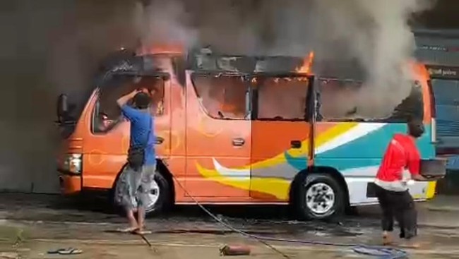 Berdasarkan keterangan dari masyarakat, kata Sudiyono, mobil travel yang terbakar itu baru saja dibeli dari Jakarta.