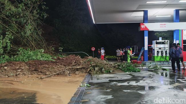 Manajer Rest Area KM 429 A, Adi Lingga Jati membenarkan informasi tersebut. Longsor terjadi di sekitar SPBU yang ada di rest area tersebut, Selasa (31/1/2023).