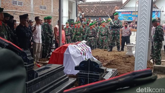 Pantauan detikJateng, upacara pemakaman dimulai pukul 10.00 WIB. Sebagai inspektur upacara Kasrem 043/Garuda Hitam Kolonel Inf Prasetyo.
