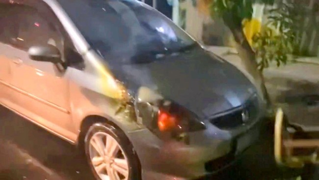 Sebuah mobil Honda Jazz terbakar di Jalan Mr. Iskandar, Kaliwangan, Blora. Video peristiwa itu beredar di media sosial.
