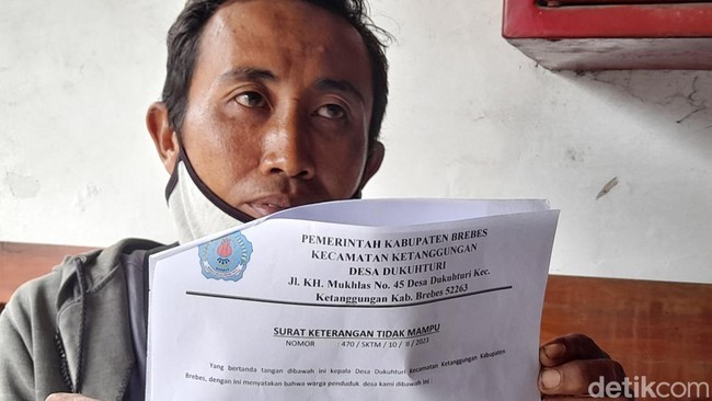 "Kartu BPJS-nya tidak aktif, jadi sama petugas disuruh bikin SKTM untuk istri saya yang sedang dirawat di RSUD Brebes," ungkap Nano sambil menunjukkan berkas pengajuan SKTM.