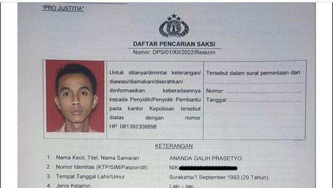 "Iya betul masuk daftar pencarian saksi. Galih tersebut sementara sebagai saksi," ungkap Kasi Humas Polres Klaten Iptu Abdillah kepada detikJateng, Minggu (5/2/2023).