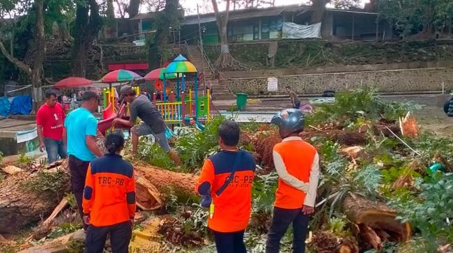 Menurut Isdinah, dahan menimpa lapak dan mejanya. Untungnya saat kejadian tidak ada pengunjung di lokasi sehingga hanya kerugian lapak.