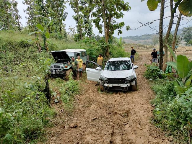 Satu unit mobil Honda HRV tersesat hingga masuk ke tengah hutan di Tambakromo, Pati. Anehnya, tak ditemukan jejak roda di jalan setapak yang terjal, berlumpur, dan sulit dijangkau oleh mobil berpenggerak empat roda atau 4X4 itu. Mobil putih itu pun masih bersih saat ditemukan.