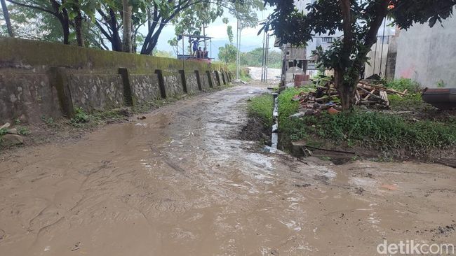 "Kalau hujan deras cuaca kan nggak tentu kita, kirimannya pasti ke sini dan masuk seperti ini, kemarin sih sampai selutut," kata Yoyok saat ditemui di rumahnya, Selasa (14/2/2023).