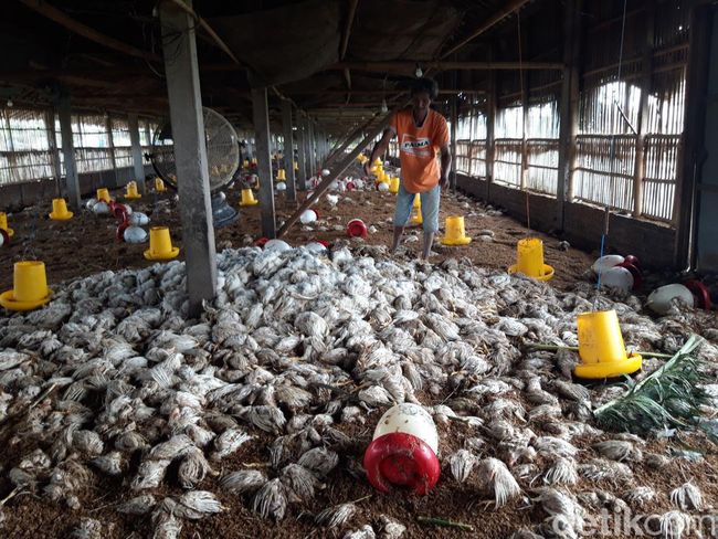 "Dari 8.000 ekor, tinggal 369 ekor yang masih hidup. Lainnya mati. Ayamnya sudah umur 50 hari, sebenarnya sekitar 2 minggu lagi panen," imbuh dia.