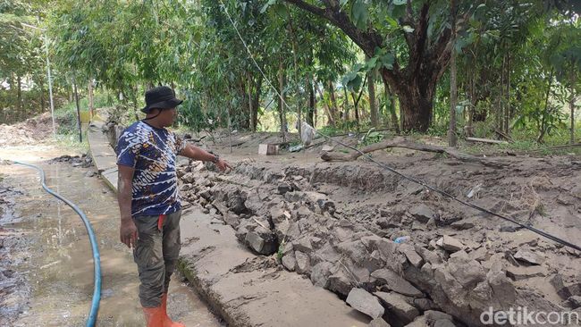"Pertama tanggul kemarin yang sementara, kebetulan belum diperkuat. Terus tanggul lama kurang lebih 30 meteran. Air sempat masuk ke rumah warga 2 meteran," jelasnya.