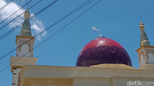 Pantauan detikJateng di lokasi, puncak kubah tersebut terbuat dari besi stainless steel berlafazkan Allah. Hiasan tersebut miring ke arah tenggara.