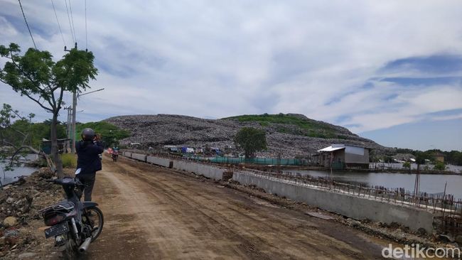 Pantauan detikJateng, Selasa (21/2/2023), penampakan tumpukan sampah yang sebagian sudah ditumbuhi rumput membuat TPA Degayu makin menyerupai bukit. Antrean truk pengangkut sampah tampak hilir mudik di pintu masuk.