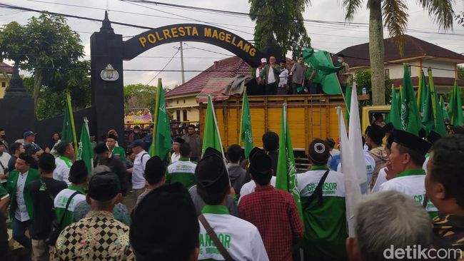 Pantauan detikJateng, Jumat (24/2/2023), massa terlebih dahulu di Lapangan Srumbung. Kemudian sekitar pukul 15.00 WIB massa bergerak menuju kantor Polresta Magelang.
