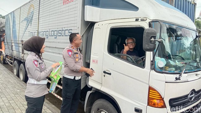 Sopir truk harus menunggu hingga 4-5 jam. Tak ayal sopir truk pun ada yang tertidur di jalanan karena macet tidak bisa bergerak sama sekali. Polisi pun membangunkan sopir truk yang tertidur.