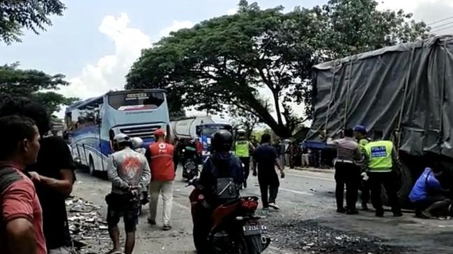 Sebelumnya diberitakan, kecelakaan beruntun terjadi di jalur Pantura Rembang. Kecelakaan melibatkan satu unit bus dan dua truk.