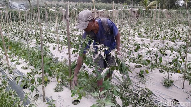 Pantauan detikJateng, sayuran terkena dampak hujan abu Merapi antara lain cabai, tomat, dan lainnya.