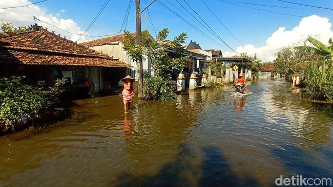 Pantauan detikJateng di lokasi, Senin (13/3) pukul 15.30 WIB genangan banjir masih merendam jalanan Desa Payaman. Kedalaman air bervariasi mulai 20 sampai 30 sentimeter.