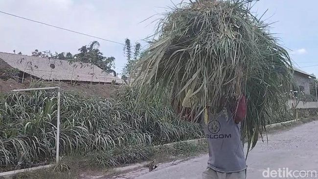 Hujan abu dampak erupsi Merapi melanda sejumlah wilayah di Kabupaten Boyolali dan Magelang. Dampaknya warga kesulitan mendapatkan stok pakan untuk ternak mereka.