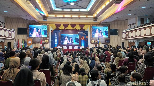Sementara itu dari pantauan di lokasi, Auditorium UNS sudah penuh dengan mahasiswa. Bahkan ada yang sampai duduk lesehan di bawah.