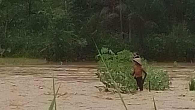 Namun baru sampai tengah sungai, debit air semakin naik sehingga korban tidak bisa melanjutkan perjalanan lagi.