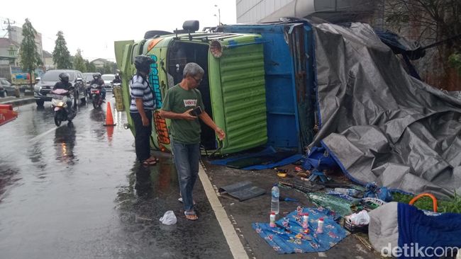 Sementara bak bagian belakang miring dan muatan tidak tumpah. Akibat truk terguling di setengah badan jalan, lalu lintas sempat tersendat. Anggota Satlantas Polres Klaten di lokasi mengatur lalu lintas sambil menunggu proses evakuasi.