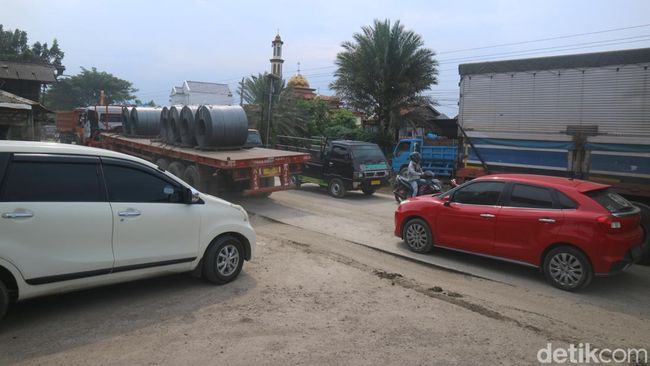"Macet di sini sering, paling tiga hari ini, kalau hujan macet tambah parah, jalan licin, bahu jalan bergelombang," jelasnya.