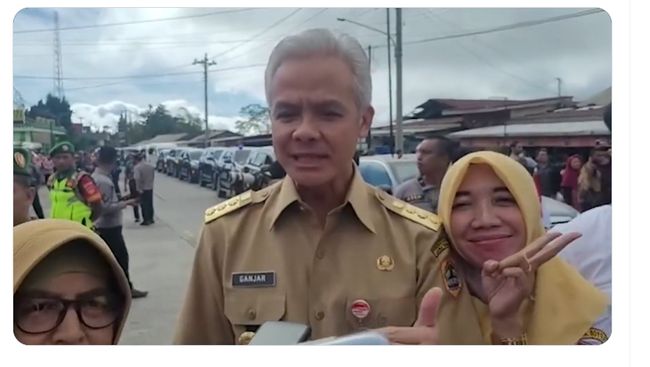 Dalam cuitan itu, Ganjar juga mengunggah video berdurasi 1 menit 57 detik. Dalam video itu terlihat, saat momen wawancara, ada dua emak-emak yang mendekati Ganjar.