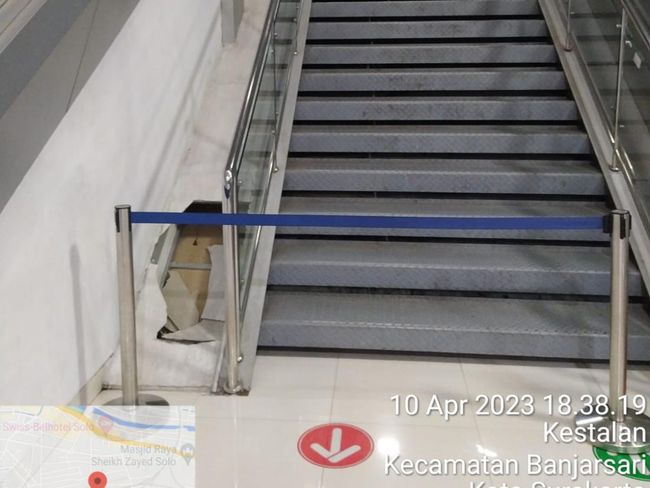"Assalamualaikum mas @gibran_tweet , lapor ini sebelah tangga Stasiun Balapan jebol," tulis akun @G*** disertai foto, dilihat detikJateng, Senin (10/4/2023).