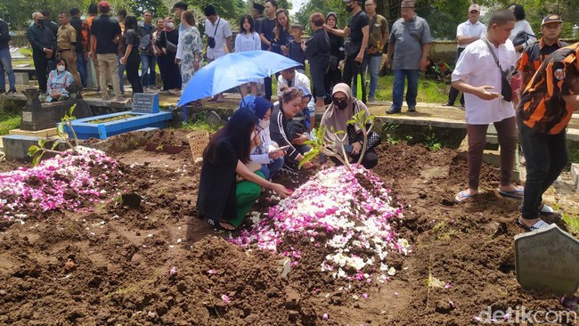 Pantauan detikJateng, jenazah tiba di pemakaman TPU Giriloyo pukul 11.26 WIB. Setibanya di makam, peti jenazah digotong sejumlah orang dari ambulans menuju liang lahad di Blok B 7.