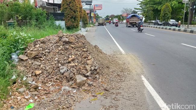 Pantauan detikJateng, lokasi pertama di 100 meter selatan terminal Karang, Kecamatan Delanggu. Tanah batu padas yang menyerupai tanah uruk tol itu sebagian kecil masuk bahu jalan.