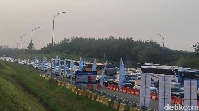Salah satu pengguna jalan, Bambang (46) menyebut kepadatan sudah terjadi sekitar 2 kilometer. Dalam 2 kilometer itu, dia harus menempuh waktu 15 menit hingga pintu tol.