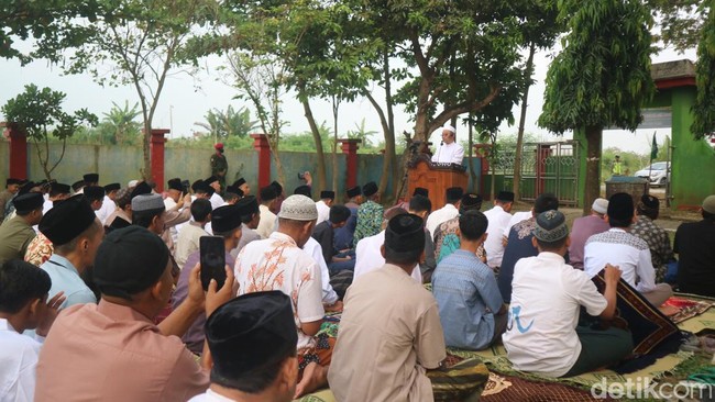 Pelaksanaan salat Idul Fitri berlangsung khidmat. Ada seratusan jemaah Muhammadiyah yang hadir di lapangan SDN 1 Setrokalangan.