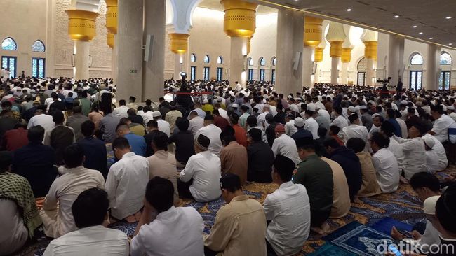 Di halaman masjid, tak sedikit jemaah yang berswafoto sebelum masuk ke dalam masjid mencari saf salat. Para jemaah diarahkan petugas untuk memenuhi tempat yang masih kosong. Di dalam masjid sudah penuh sekira pukul 05.45 WIB sehingga jemaah yang hadir belakangan mencari tempat di selasar masjid.