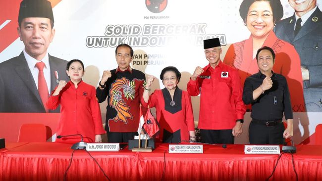 Ketum PDIP Megawai Soekarnoputri remi mengumumkan Gubernur Jawa Tengah Ganjar Pranowo sebagai calon presiden (Capres) PDIP. Presiden Joko Widodo (Jokowi) yang sedang berada di Solo pun bertolak ke Jakarta untuk menghadiri pengumuman tersebut.