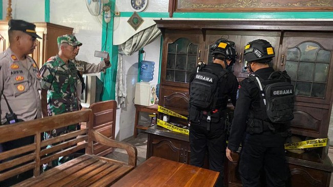 Laporan adanya TNT itu disampaikan istri almarhum pada Sabtu (29/4) kemarin. Kedua TNT itu diamankan petugas dari dalam lemari milik almarhum. Tampak lemari itu juga digaris polisi.