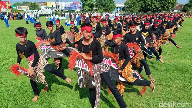 Sejumlah 240 pelajar dari SMP N 1 Lumbir, Kabupaten Banyumas, menampilkan tarian tradisional ebeg atau kuda lumping untuk memperingati Hari Pendidikan Nasional. Pentas tari ini ditampilkan di Alun-alun Purwokerto.
