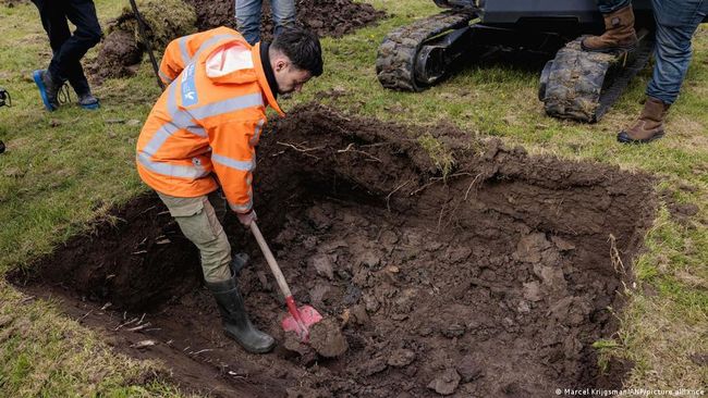 Tanah di Ommeren, sebuah desa Belanda yang berjarak sekitar 80 kilometer dari Amsterdam, penuh lubang berlumpur. Lubang ini merupakan tempat warga ramai-ramai menggali dan berburu harta karun peninggalan Nazi.