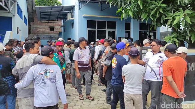 Para nelayan ini mendatangi kantor Satker PSDKP Tegalsari. Kedatangan mereka didasari rasa solidaritas kepada rekannya yang terancam denda miliaran rupiah karena melanggar aturan wilayah penangkapan ikan.