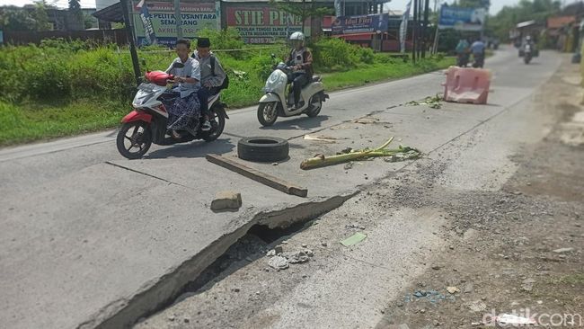 "Kejadiannya kemarin sekitar pukul 17.00 WIB saat hujan," kata pemilik warung makan dekat lokasi jalan rusak, Didik di lokasi, Senin (8/5/2023).