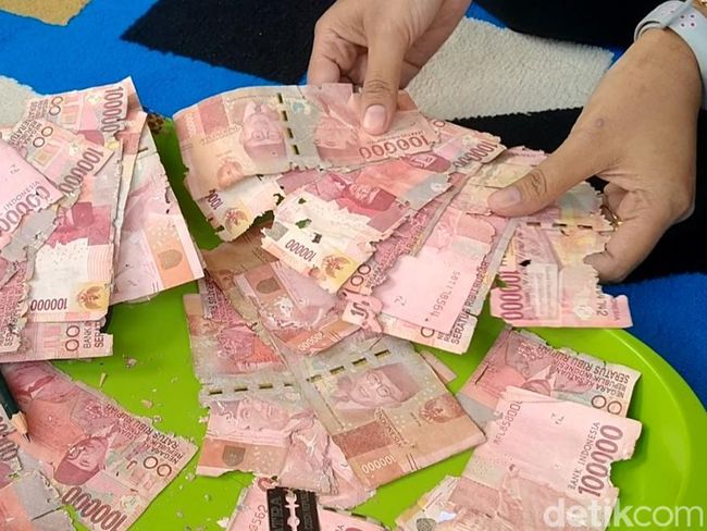 "Ternyata memang sudah lengket, sudah hancur. Tapi mending, ada yang belum begitu parah. Terus coba dibawa ke bank, pas di sana yang Rp 23,5 juta kondisinya belum parah, kita tabung ke bank," jelas Anizah.