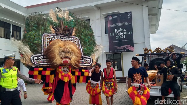 Pendaftaran bacaleg PDIP dilakukan dengan berjalan kaki dari Desa Sekarsuli dekat kantor KPU sekitar pukul 08.30 WIB. Sepanjang perjalanan rombongan ini menampilkan reog sampai di KPU.