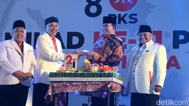 Dalam acara Milad PKS, digelar pemotongan tumpeng sebagai wujud rasa syukur. Anies juga menerima potongan tumpeng tersebut.