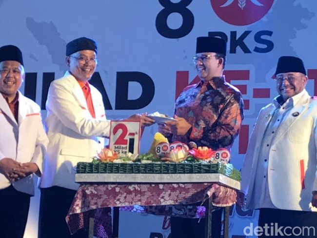 Anies Baswedan menghadiri acara milad PKS ke 21 di Graha Wana Bhakti Yasa, Umbulharjo, Kota Jogja, kemarin. Dalam acara yang dihadiri para elite PKS itu, Anies menerima potongan tumpeng dan juga sempat menyinggung soal 'penjegalan' dalam pidatonya.