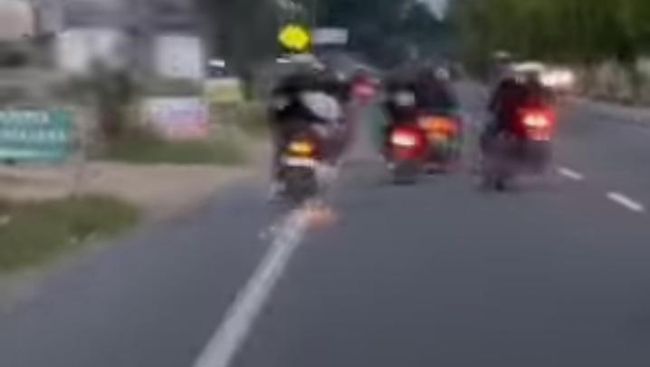 Pada rekaman berdurasi sekitar 20 detik itu terlihat sekitar 10 pemotor melaju kencang. Seluruhnya berboncengan dan ada yang melaju zi-gzag ke tepi dan tengah jalan.