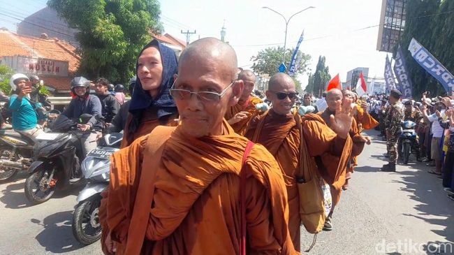 Perjalanan biksu hari Selasa (23/5/2023) masih di jalur Pantura Jawa. Mereka memasuki wilayah Jawa Tengah pada Senin (22/5) sore kemarin. Setelah menginap satu malam, biksu ini melanjutkan perjalanan ke kantor PCNU Brebes.