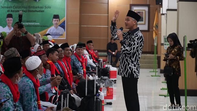 "Saya doakan lancar, hajinya mabrur dan doakan agar Indonesia aman, agar tentram dan panjenengan nanti kundur (pulang) juga sehat dan penuh berkah semuanya dan mabrur," kata Ganjar dalam sambutannya di AHD Boyolali, Selasa (23/5/2023) malam.