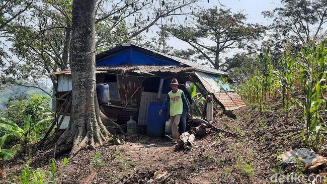 Seorang pria berusia 62 tahun tinggal di tengah hutan Bukit Patiayam, Kudus. Dia mengaku tinggal di puncak bukit itu selama 20 tahun terakhir.