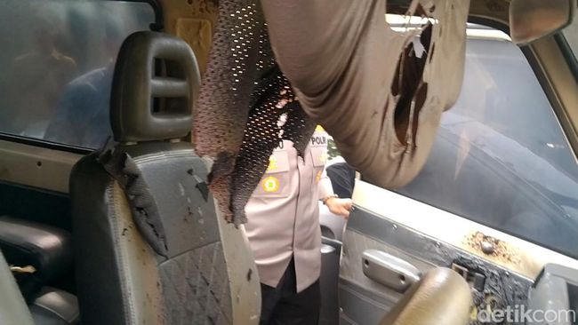Saat dia keluar, bagian dalam mobilnya sudah terbakar. Beruntung, ada sungai kecil di dekat mobil itu sehingga warga bisa mengambil air dan memadamkan api.