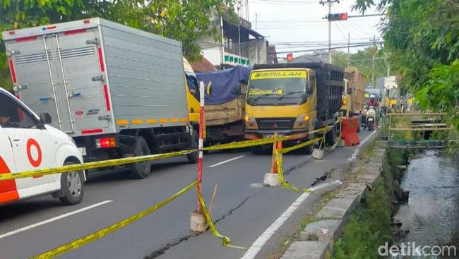 "Ini mulai dari depan warung sate, setelah traffic light berapa meter sudah ambles. Ambles retak dengan fondasinya," ungkap Yanto kepada detikJateng.
