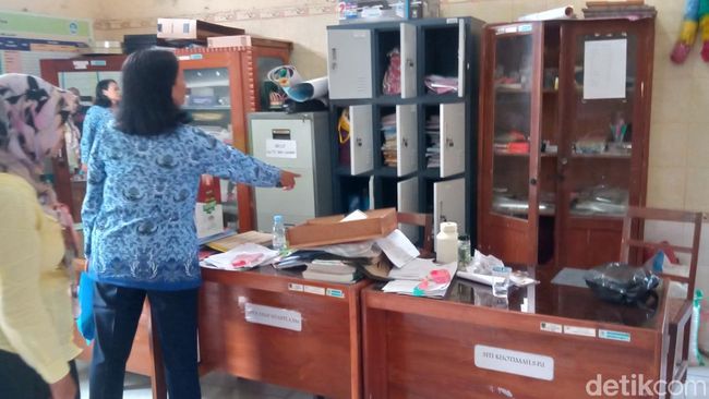 Pantauan detikJateng di lokasi, ada empat ruangan diacak-acak. Di ruang guru, semua loker, laci, dan lemari dibuka.